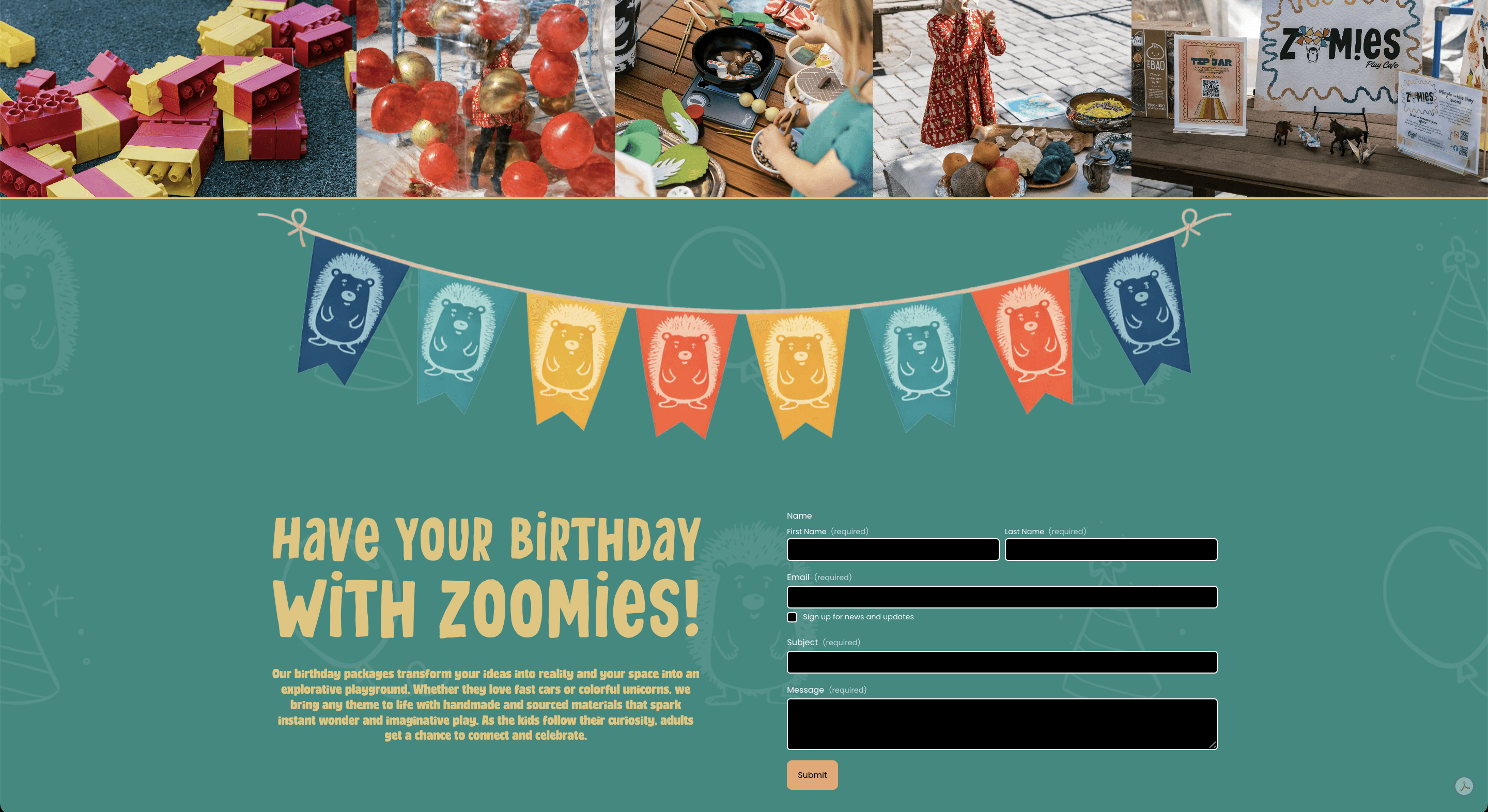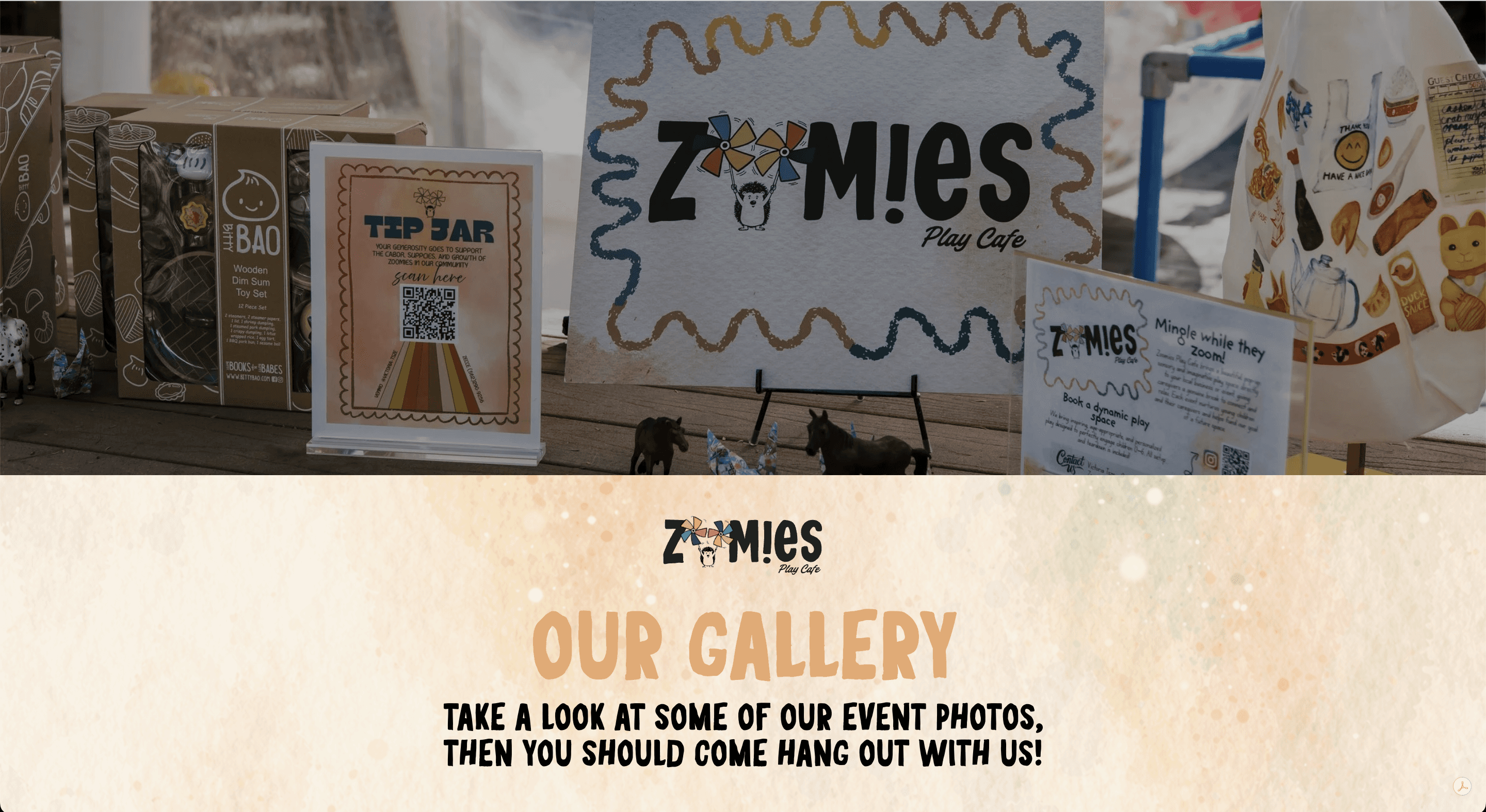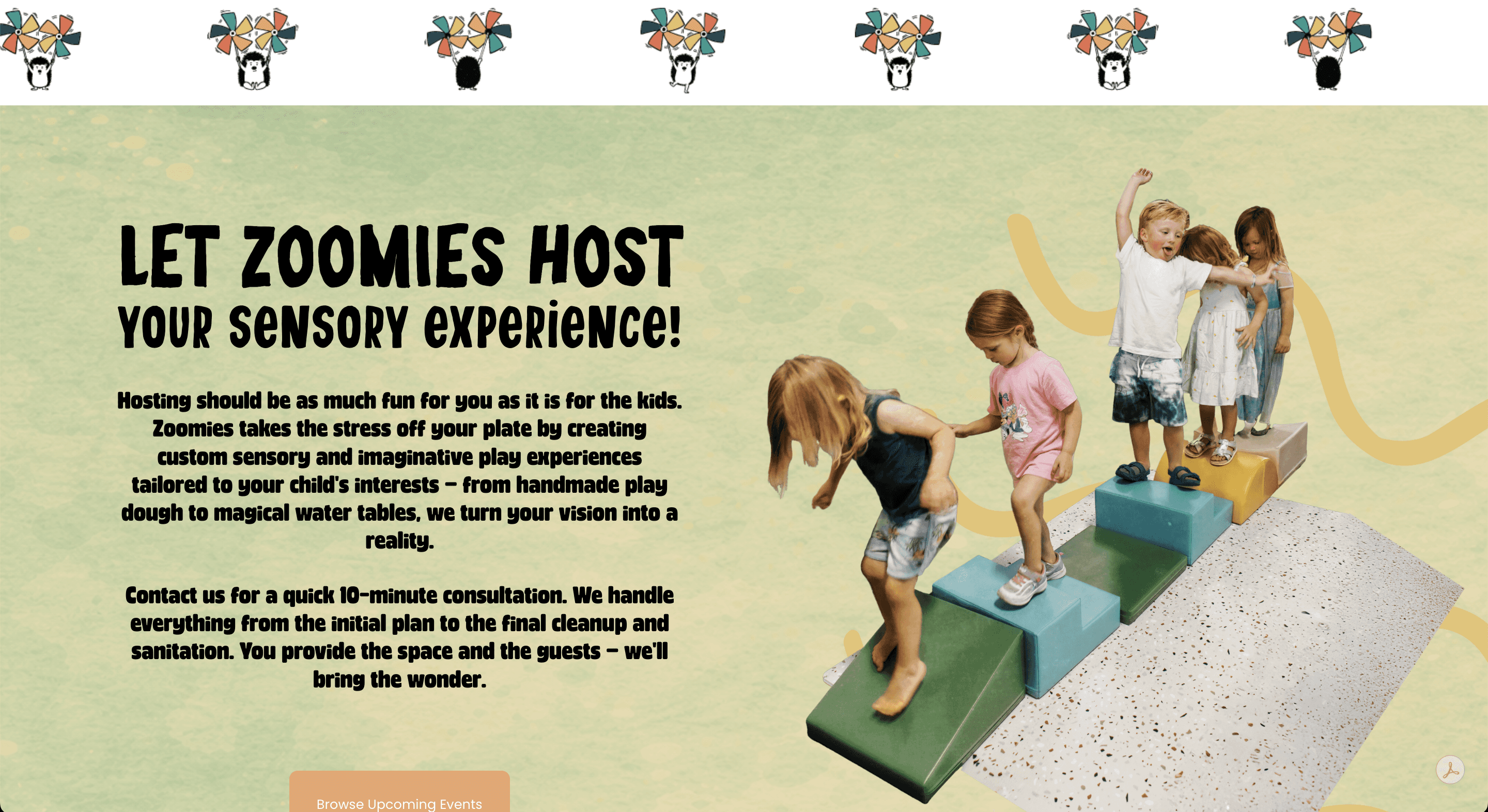 Website design, logo, and brand identity for Zoomies Play Cafe, a mobile pop-up play cafe for families in Tucson.